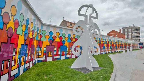 Nelson Villalobos ya finalizó su intervención en Blein Budiño, en el muro de sustentación de la columnata, que en su día perteneció a la Pérgola de Jenaro de la Fuente (hoy en Bouzas). “Una vez conocido el lugar, trabajé sobre el proyecto de la caracola; es un símbolo para mí al venir de una isla (el artista es de origen cubano); lo concebí como una ventana abierta al mar, un mar que se esconde bajo la montaña”. Así habla Villalobos de su obra, que califica como alegre, distendida “no me gusta la angustia en el arte”.